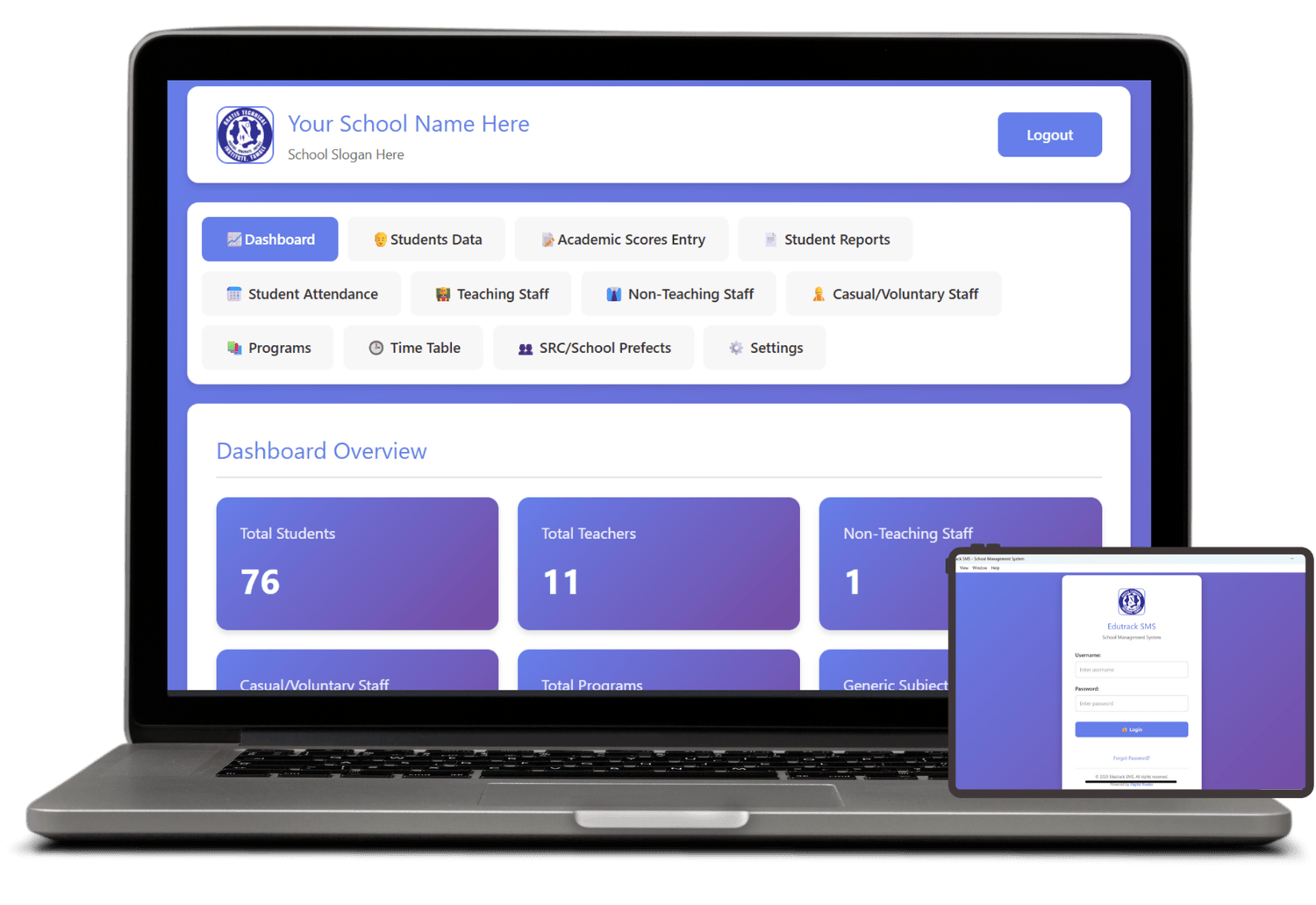 All-in-one Desktop offline app to manage your school. Student records. Teacher data. Attendance. Timetable. Scores. Reports. All in one place. All easy. All done in minutes — not weeks.